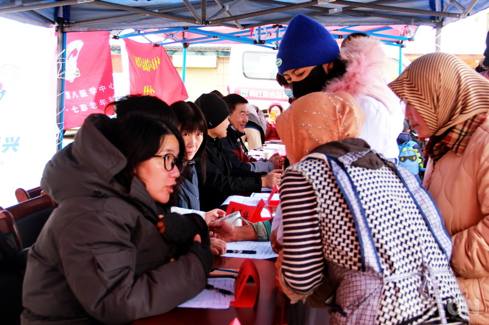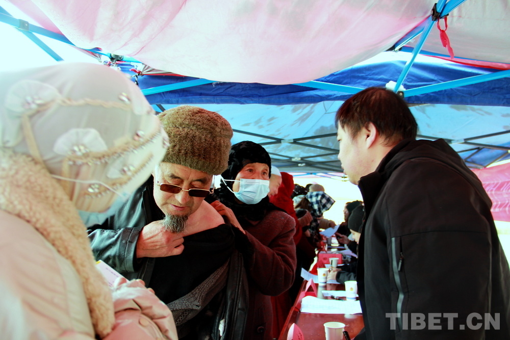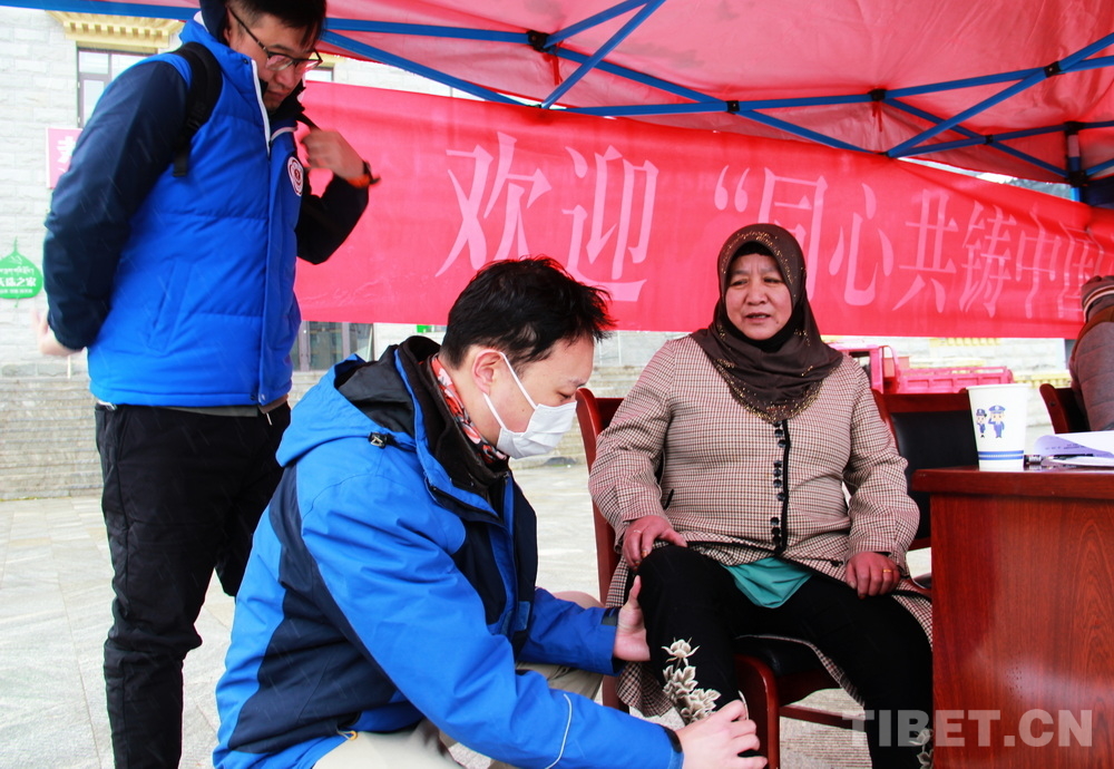 高原的大雪天,在室外即便來回走動也感覺格外寒冷。前來問診的患者絡(luò)繹不絕,醫(yī)務(wù)志愿者們堅守崗位,身披雪花,腳踩積雪,在翻譯的幫助下不停接診,一坐就是大半天。有的醫(yī)務(wù)志愿者專心接診,渾然不知衣服上已經(jīng)積雪;有的醫(yī)務(wù)志愿者發(fā)現(xiàn)患者不太理解疾病的分科,就同時擔起了分診工作;有的醫(yī)務(wù)志愿者自身高反強烈,吸著氧也要堅持接診……