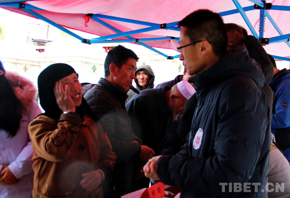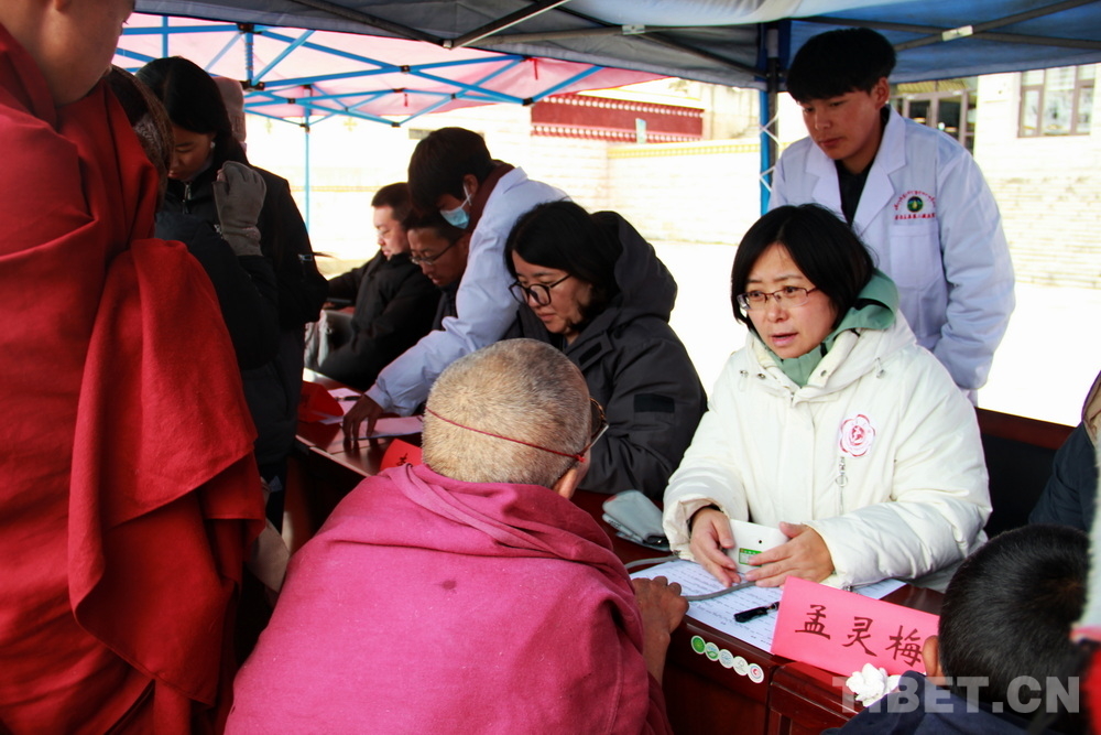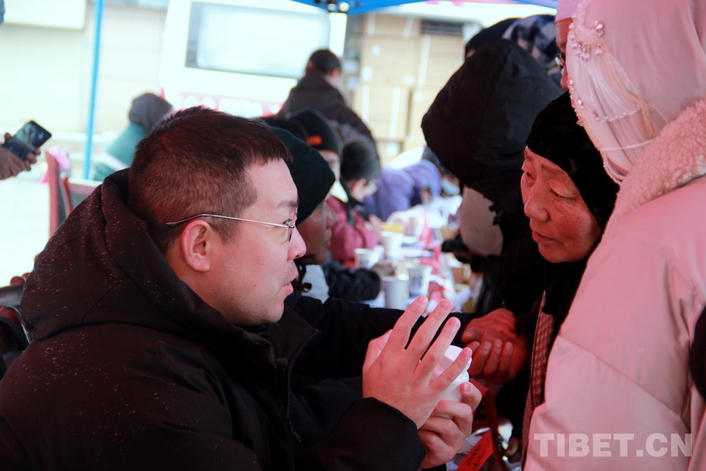 在郎木寺義診點,此前為了容納更多群眾就診,因此將義診點設(shè)在了寺院門外的小廣場。盡管大雪紛飛,但提前得知義診消息的群眾已經(jīng)陸續(xù)趕來,擔心臨時更換義診場所影響后續(xù)前來的群眾就診,醫(yī)務(wù)志愿者們毫無怨言地在臨時搭起的防雨棚下按時開始了義診。