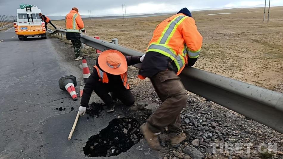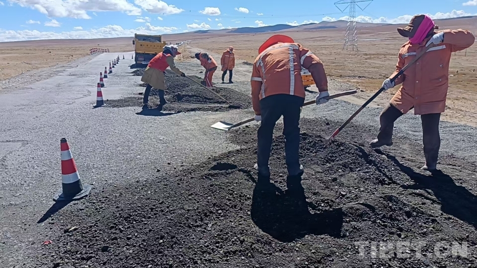 受低溫限制,唐古拉山路段的油路養(yǎng)護(hù)季節(jié)性非常強(qiáng),每年的5至10月是養(yǎng)護(hù)的黃金時間。為了能在有限的時間內(nèi)更好地養(yǎng)好公路,每年這個季節(jié),我和工友們都要在凌晨四五點出發(fā),一絲不茍地進(jìn)行日常巡查,對破損的路面進(jìn)行及時修補(bǔ)。每天工作超過十個小時,餓了吃些糌粑,渴了喝點酥油茶,累了就靠在車上休息一會兒。春天,我們處理路面裂縫;夏天,我們清理塌方;冬天,我們與冰雪戰(zhàn)斗。我們?nèi)硇耐度?,用青春和汗水守護(hù)這條公路,確保這條至關(guān)重要的運(yùn)輸動脈能夠抵御極端惡劣氣候的考驗,讓每一輛過往車輛都能安全順暢通行。