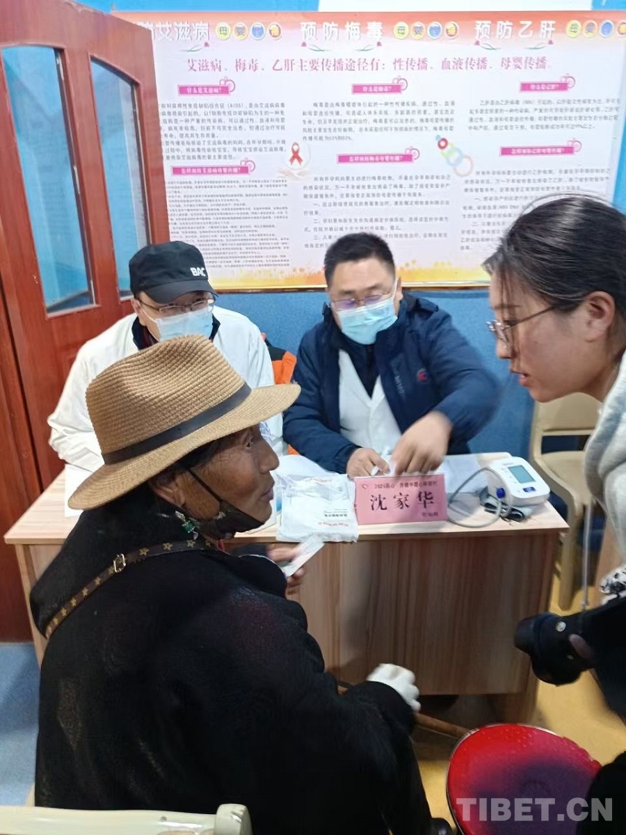 圖為中國康復(fù)研究中心普外科專家范榮福為當(dāng)?shù)厝罕娍丛\ 攝影:賈春玲