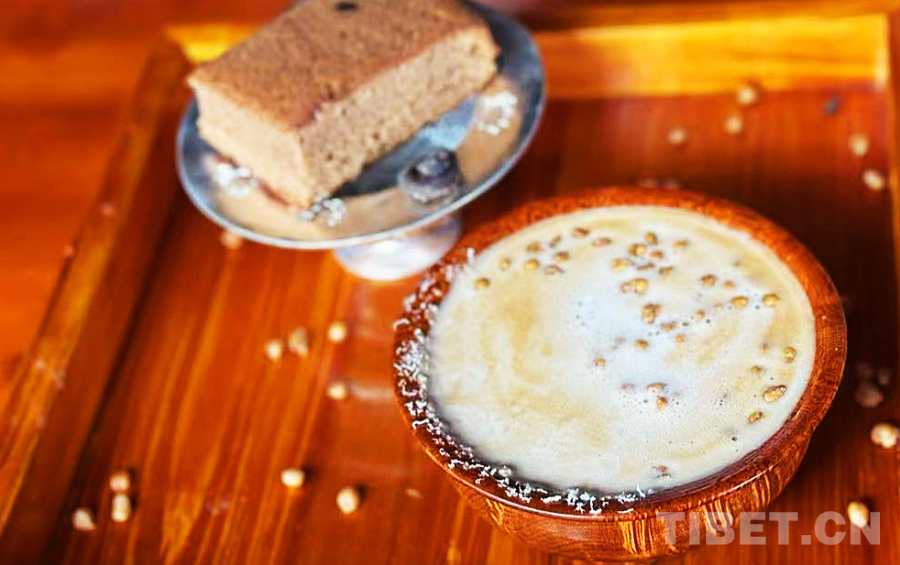 在濃郁的咖啡液里注入青稞奶,撒上當(dāng)?shù)禺a(chǎn)的酸酸的奶渣和青稞粒——一碗香濃的咖啡完成了。是的,是“一碗咖啡”,索朗群培專門選用了藏族群眾喜愛(ài)的傳統(tǒng)木碗用作咖啡杯。