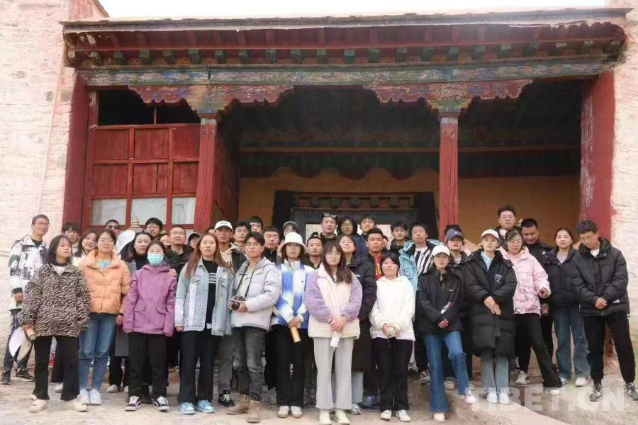 圖為張艾平帶領(lǐng)學(xué)生在西藏自治區(qū)日喀則市江孜縣帕拉莊園研學(xué)