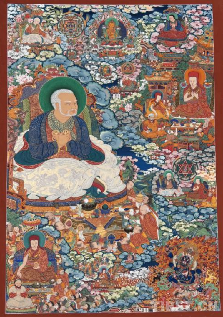 圖為展覽展出的唐卡作品《薩迦五祖》 作者:孜東·次仁羅杰