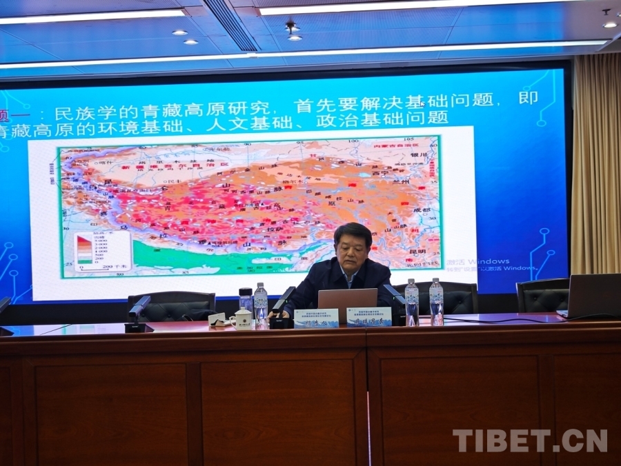 圖為國(guó)家民委原副主任、全國(guó)人大民族委員會(huì)原副主任、中央民族大學(xué)教授丹珠昂奔發(fā)言 攝影:蘭周加