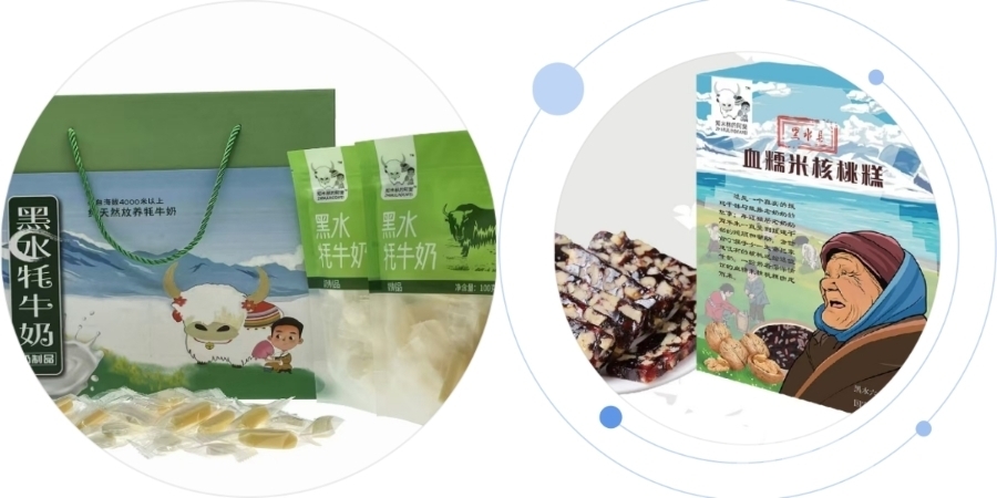 有了加工企業(yè)的支持,楊斐開始著手打造“阿斐牌”黑水牦牛奶條奶片和“阿斐牌”血糯米核桃糕。他發(fā)揮自己的設(shè)計(jì)專長,為這些產(chǎn)品打造了獨(dú)特的品牌形象。同時(shí),他還聯(lián)系了東西部對(duì)口援建黑水的國企,爭取到了后續(xù)的產(chǎn)業(yè)投入。
