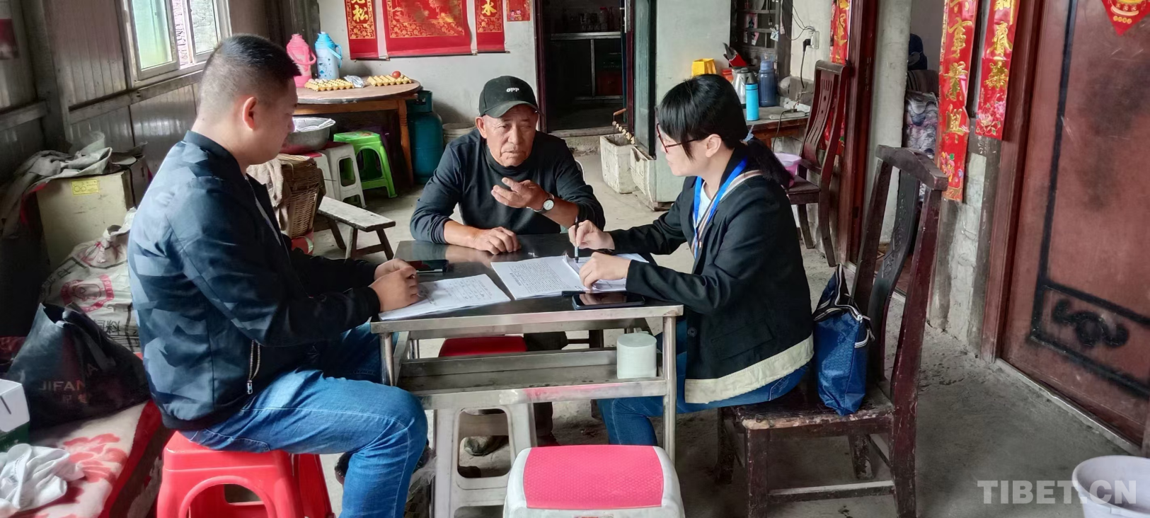 圖為援藏期間,王燕(右一)正在走村入戶進(jìn)行調(diào)研 受訪者供圖