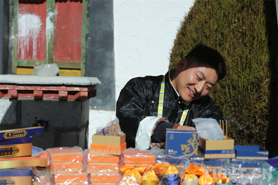 圖為市民游客在集市選購(gòu)文創(chuàng)產(chǎn)品。攝影:德吉卓瑪