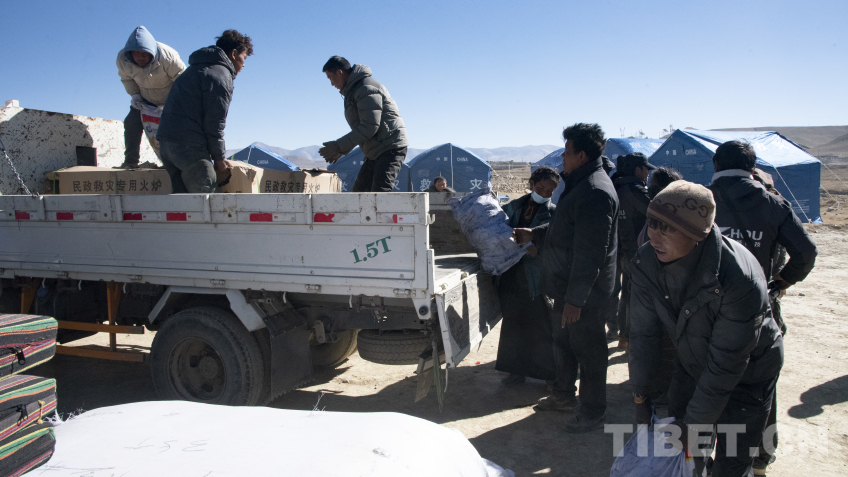圖為定日縣曲洛鄉(xiāng)左措村安置點受災(zāi)群眾正在有序搬運物資 攝影:趙振宇
