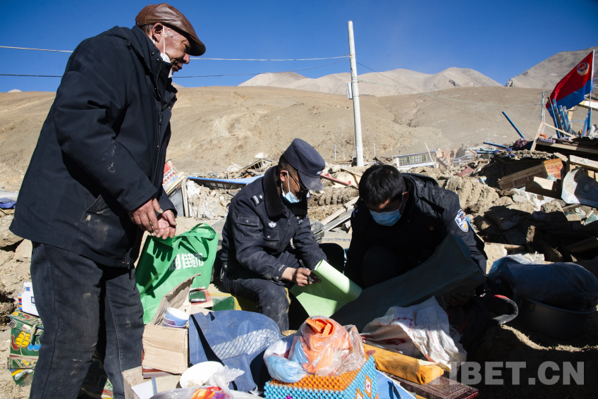 在坍塌房屋面前,救援隊伍排成一列,小心翼翼地傳遞著從受災(zāi)群眾家里轉(zhuǎn)移出來的財產(chǎn)。一包牛肉干、一袋青稞面、一只老木箱,無論物資體積大小,救援人員都把它們當(dāng)作自己家的東西一樣珍惜,在受災(zāi)群眾確認后由公安干警在現(xiàn)場登記并返還給受災(zāi)群眾。
