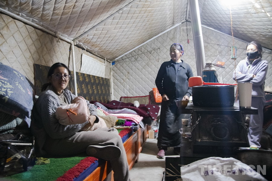 “地震是9點多鐘發(fā)生的,12點鐘我們就已經(jīng)搭建好了帳篷讓次央家住了進去,可以說她是全村第一個住進帳篷的人。考慮到孩子剛剛出生,我們緊急調(diào)運來火爐,讓次央家中第一個升起爐火取暖?!边_娃白珍說地震發(fā)生后,村兩委及駐村工作隊干部第一時間趕往平時關(guān)照的特殊群眾家中,優(yōu)先幫助他們解決地震后遇到的困難。