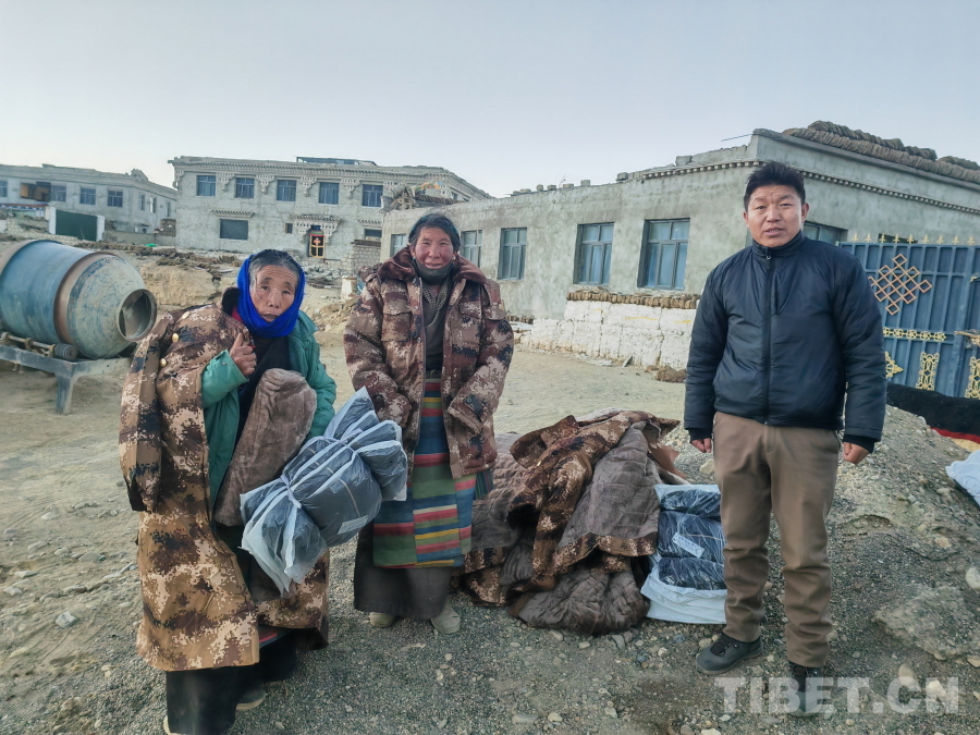 圖為西藏消防駐成都消防聯(lián)絡(luò)保障中心工作人員趙涵運(yùn)送物資到日喀則市拉孜縣受到村民歡迎