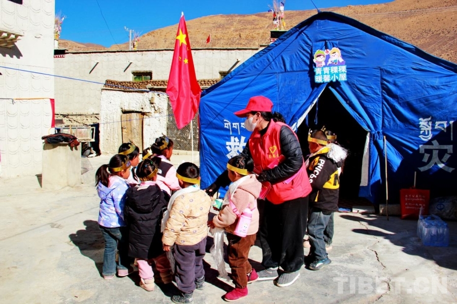 中國西藏網(wǎng)訊 午后,陽光明媚,西藏自治區(qū)日喀則市定結(jié)縣江嘎鎮(zhèn)榮貢村村民旦增點(diǎn)旦家院子里的臨時(shí)帳篷里傳出陣陣孩子們歡樂的笑聲歌聲。1月18日,旦增點(diǎn)旦的雙胞胎寶寶迎來百天,溫馨的“情暖震后帳篷,共賀雙寶百日”活動(dòng)在這里舉辦。
