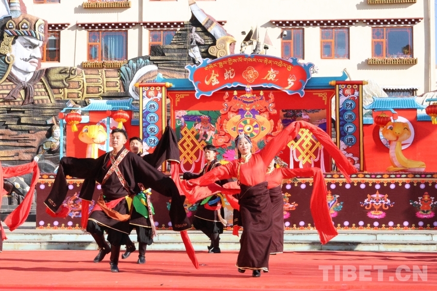 中國(guó)西藏網(wǎng)訊 1月30日,四川省甘孜藏族自治州理塘縣以“春到萬(wàn)家·感恩奮進(jìn)”為主題,在新時(shí)代文明實(shí)踐廣場(chǎng)舉辦春節(jié)、藏歷新年文藝匯演,吸引了上千居民群眾“趕場(chǎng)”觀看。