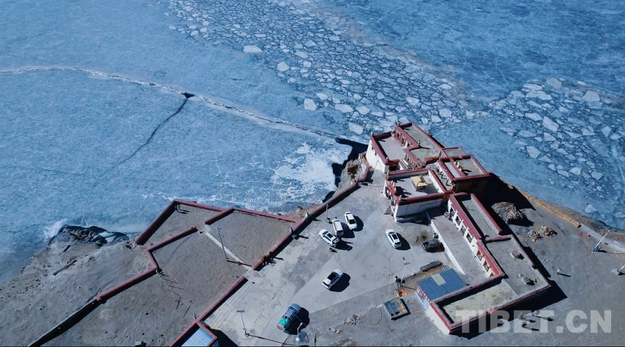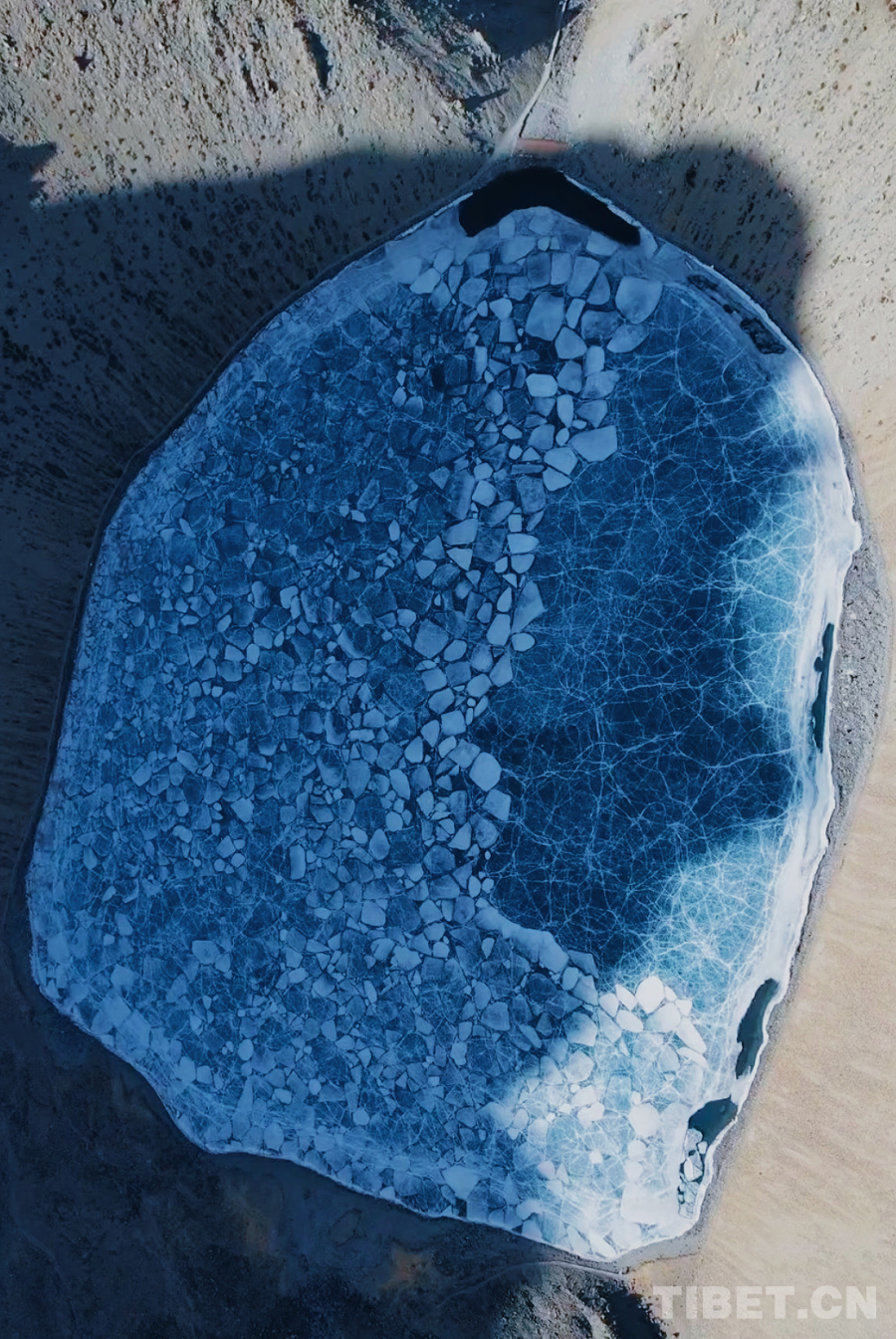 圖為冬日的恰央錯湖面結冰,湛藍如翡翠,從空中俯瞰如同一個巨大的“盾牌”,十分壯觀,前來打卡的游客更是絡繹不絕。攝影:德吉卓瑪