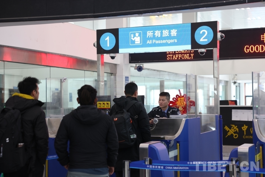 圖為聶拉木邊檢站民警對入境旅客進行驗放