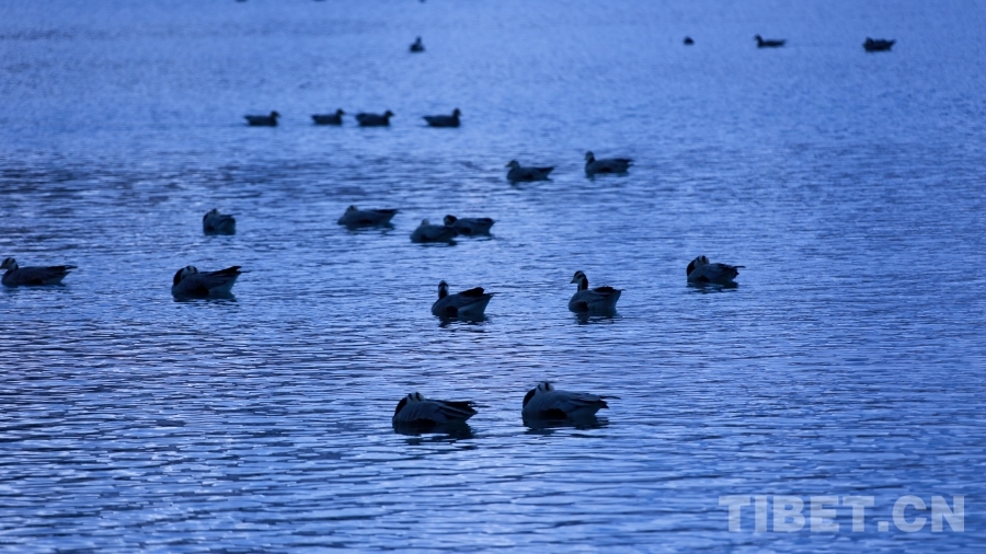 圖為在拉魯濕地湖泊中覓食嬉戲的鴨群 攝影:德吉卓瑪