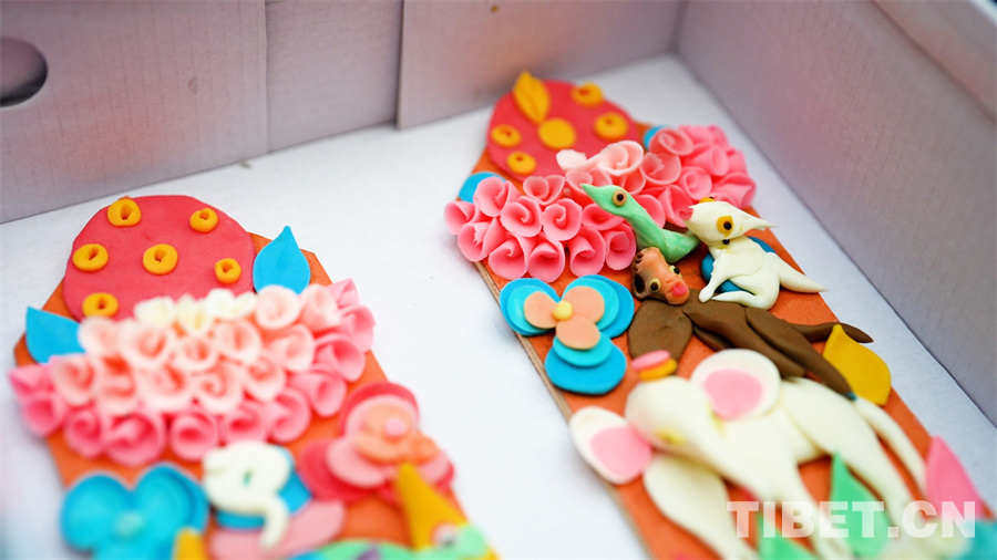 羅布大叔的老家在日喀則市仁布縣普松鄉(xiāng),他制作酥油花已經(jīng)有20多年的時間了。在過完日喀則農(nóng)事新年后,他便在拉薩擺攤售賣酥油花?!安貧v新年是我們傳統(tǒng)節(jié)日中最隆重的節(jié)日,家家戶戶在新的一年里都想有一個吉祥如意的好兆頭,所以這段時間在拉薩的生意特別好。酥油花的制作是一項傳統(tǒng)技藝,不僅是我養(yǎng)家糊口的途徑之一,也是文化的不斷傳承?!绷_布說,“我的新年愿望很簡單,就是希望能夠過個好年!”
