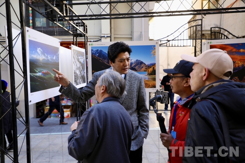 圖為甘孜州政協(xié)副主席、州文化廣播電視和旅游局黨組書(shū)記、局長(zhǎng)劉洪介紹攝影作品 攝影:龍真多吉