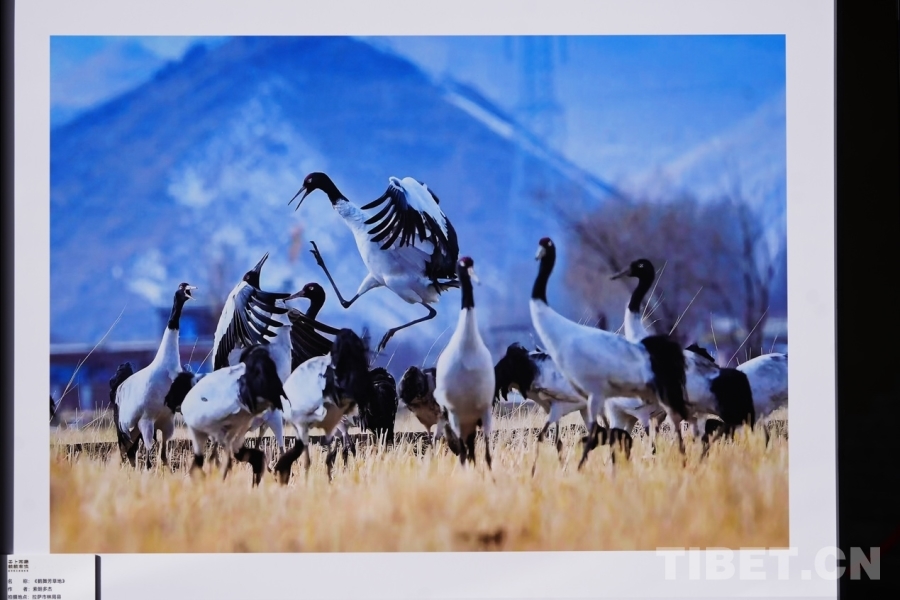 圖為攝影展上黑頸鶴主題攝影作品 翻拍:德吉卓瑪