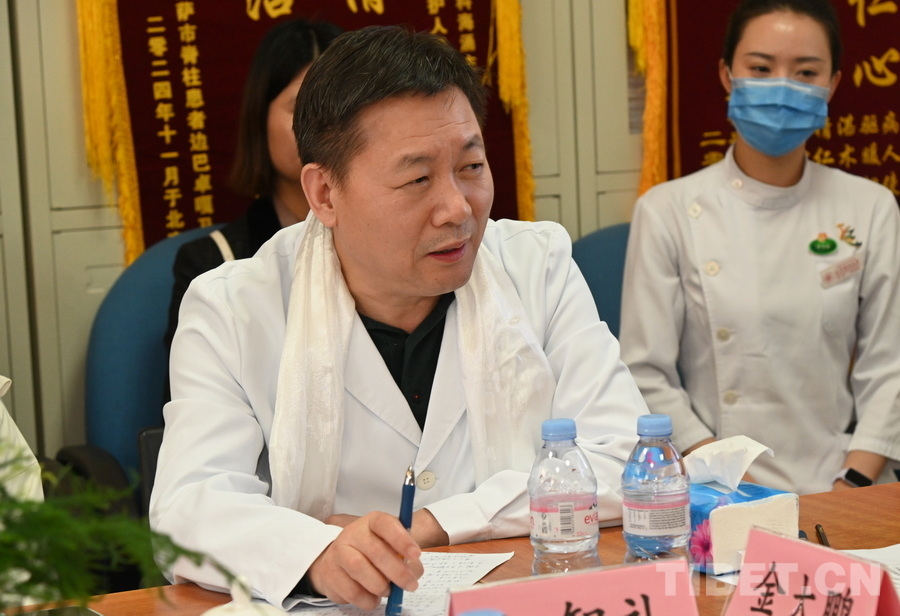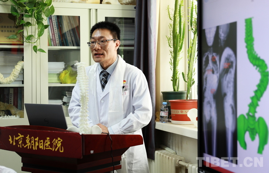 圖為北京朝陽(yáng)醫(yī)院骨科副主任醫(yī)師周立金介紹在該院救治的5名四川省甘孜州石渠縣脊柱側(cè)彎患兒的病情及手術(shù)方案攝影:劉莉