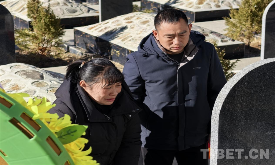 近日,在洛隆縣烈士陵園內,一場莊嚴肅穆又飽含深情的祭掃活動在這里舉行。重慶籍烈士蔣必清之女蔣華英,在丈夫及重慶潼南區(qū)退役軍人事務局優(yōu)撫科有關人員的陪同下,跨越千里來到陵園內,終于與56年未曾謀面的父親“相聚”。蔣華英女士緩緩走向父親的墓碑,輕輕擺上祭品,淚水奪眶而出,用顫抖的雙手撫摸著墓碑上父親的名字,傾訴著多年來的思念。