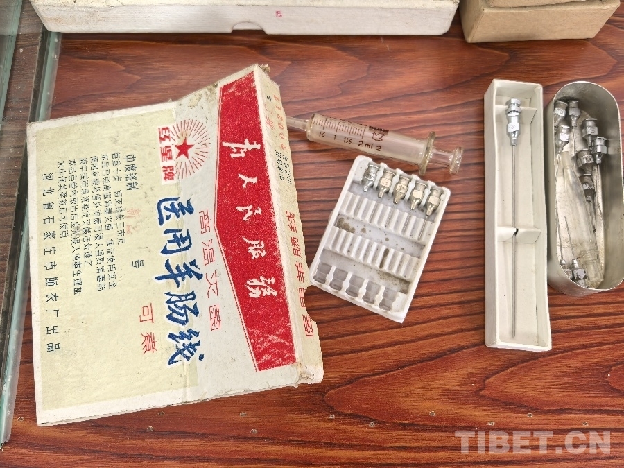 阿萬倉中心衛(wèi)生院的會議室里陳列著王萬青在當時用過的醫(yī)藥箱與醫(yī)療器械,其軍才讓一一做了介紹。他說:“把這些設備、物品陳列起來,可以將以前的醫(yī)療條件、生活水平和現(xiàn)在進行對比,要學習、傳承老一輩的做法、醫(yī)德與精神?!?/p>