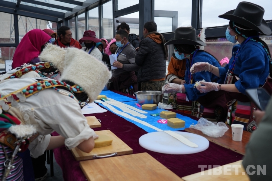 圖為“拉拉”和“推”制作現場。“拉拉”和“推”是藏北獨具特色的一種高品質乳制品,它可以給牧民提供極高的營養(yǎng),是招待客人和饋贈親朋好友的食物之一。