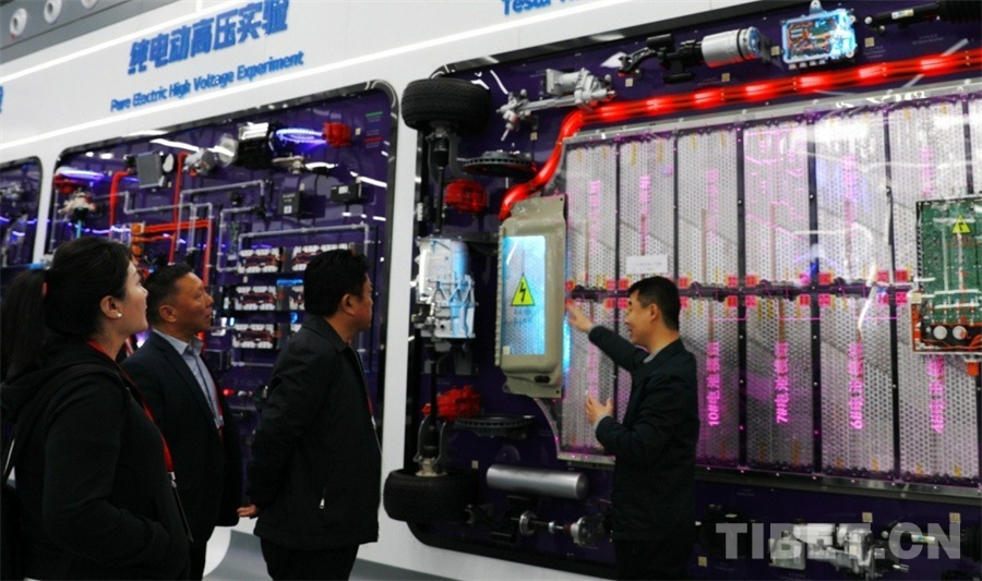 “這是由7104節(jié)電池組成的特斯拉的電池組,它是402伏的高壓電。所以,沒有經(jīng)過專業(yè)培訓(xùn)進(jìn)行電動汽車維修會有一定的危險(xiǎn)性?!北狈絿H汽車教育展廳、車間負(fù)責(zé)人黨超為到訪的西藏自治區(qū)工商聯(lián)民營企業(yè)家赴京學(xué)習(xí)參觀團(tuán)一行詳細(xì)介紹著墻上展示的電池組。大家聽得津津有味。