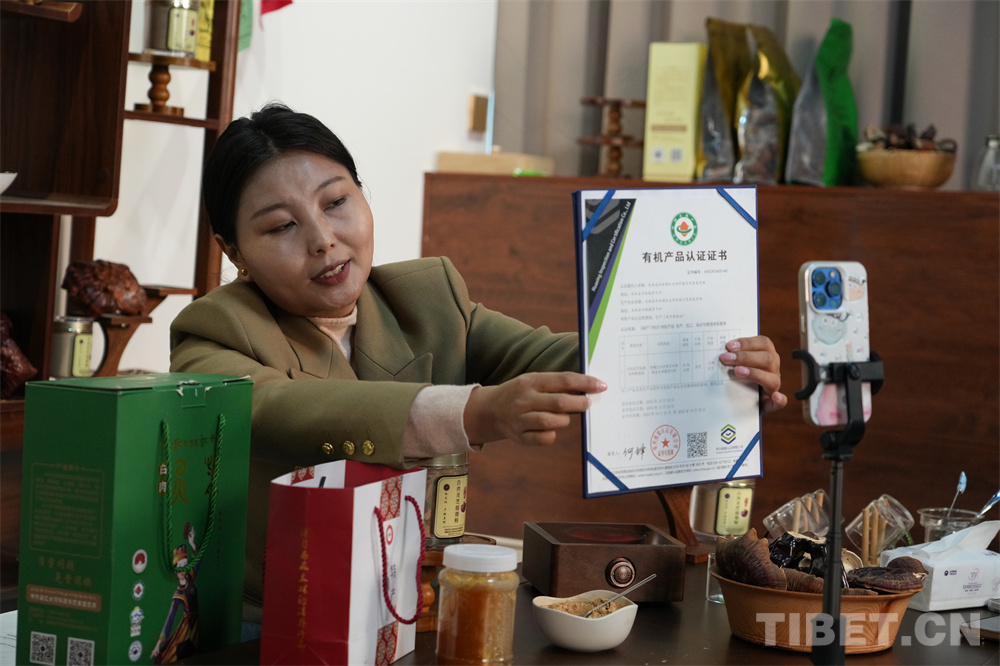 同時,在跑業(yè)務(wù)中鍛煉言談,在業(yè)余時間抓緊讀書充實自己,措姆越來越自信。察覺到互聯(lián)網(wǎng)銷售的巨大潛力,她開始探索新的銷售模式。2022年第一次直播時,只有零星的觀眾進來又很快離開,現(xiàn)在想起來,措姆還是有點尷尬和沮喪。但是她說,“即使直播間只有一兩個人,我還是會堅持直播兩三個小時”。只不過,她更加積極投入,學(xué)習(xí)網(wǎng)紅主播的經(jīng)驗,以大美山水為背景,以自家的靈芝為主角,拍如何種植、培育、收獲,講田間地頭的勞動故事、講收獲時的滿足、講產(chǎn)品的特色……慢慢地吸引了眾多粉絲的關(guān)注?!熬W(wǎng)友通過‘云參觀’種植、收購這一系列過程,加上自己詳細的產(chǎn)品推介,很多朋友開始認識我們、認識本地靈芝。我們贏得了客戶的信任?!?/span>