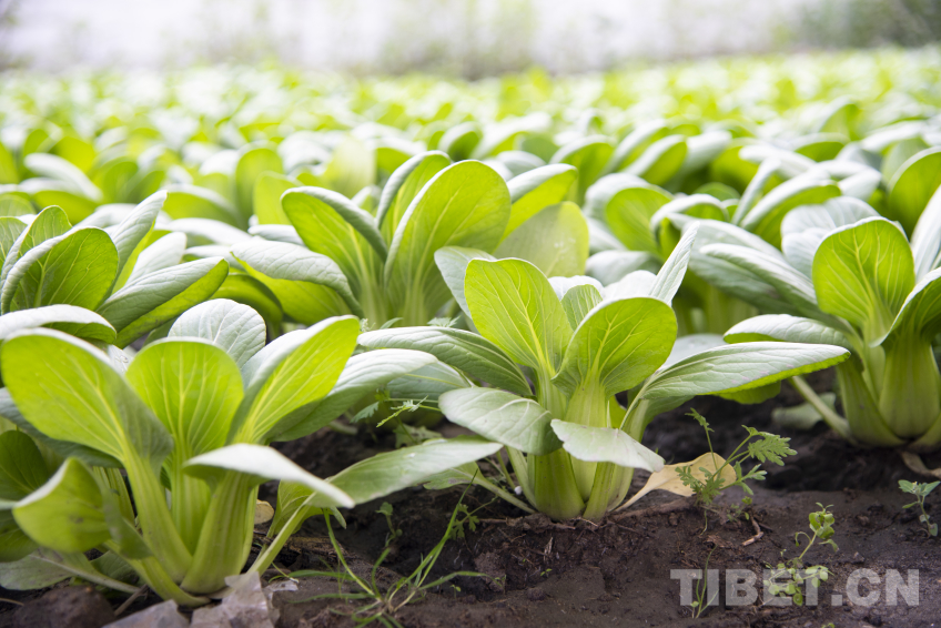 圖為定日縣長(zhǎng)所鄉(xiāng)嘎旦村震后修繕的蔬菜溫室大棚內(nèi)長(zhǎng)勢(shì)正旺的綠葉菜 攝影:趙振宇