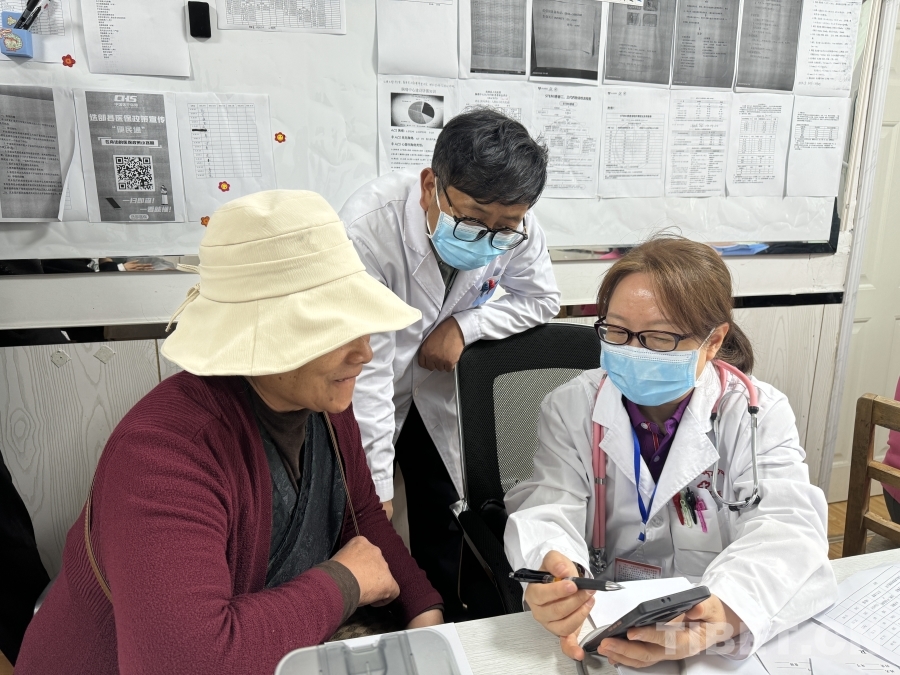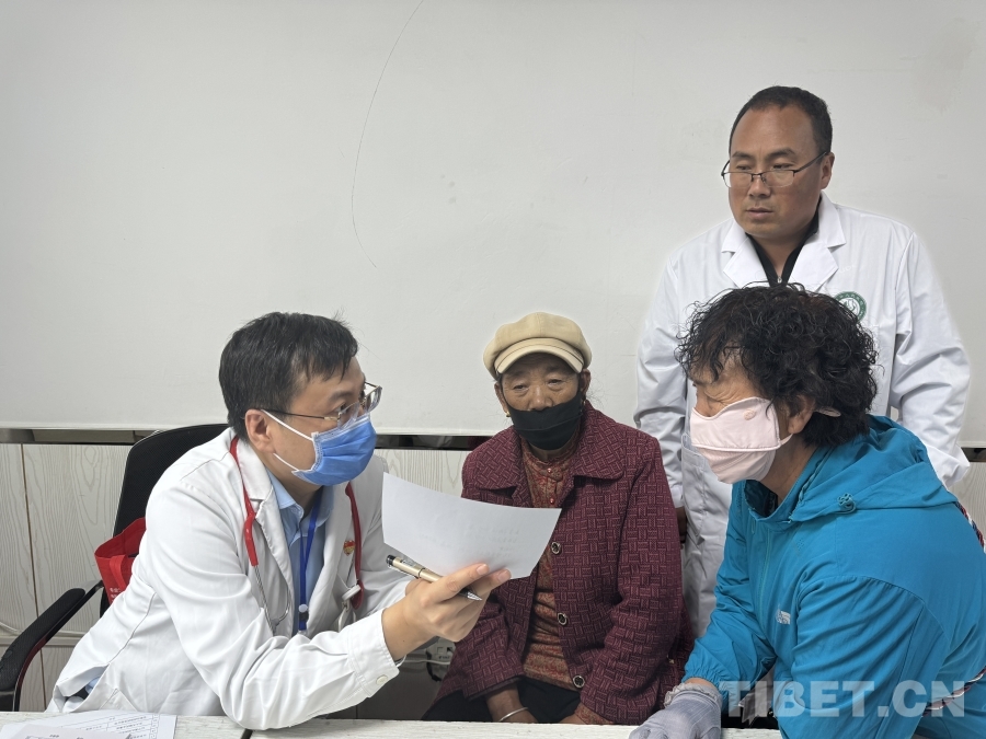 義診現(xiàn)場溫情涌動。慕名而來的患者中,有坐著輪椅的骨關(guān)節(jié)病患者,有咳嗽不止的肺炎患者,還有帶著厚厚病歷資料和影像檢查結(jié)果的慢性病患者。專家們細致地為每位患者聽診、把脈、閱片、解讀報告,不僅開具處方、贈送藥品,更耐心解答各種健康疑問。許多患者就診后如釋重負,幾位藏族老人更是拉著專家的手久久不愿離去,用合影的方式表達對首都醫(yī)生的感激之情。