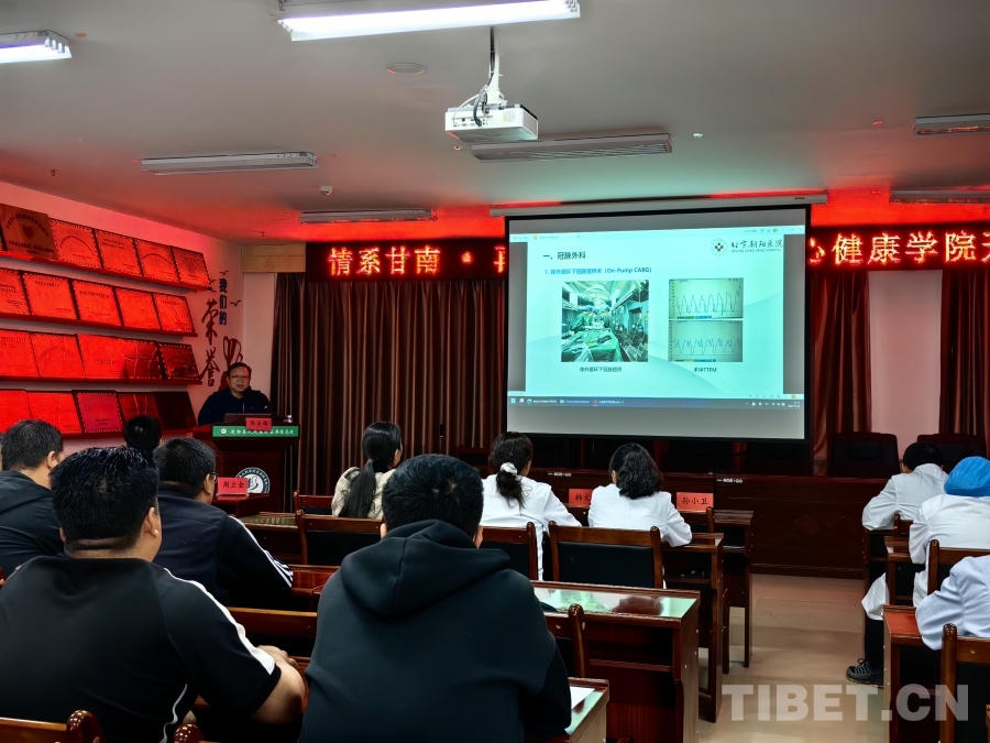 圖為蘇丕雄醫(yī)生為迭部縣人民醫(yī)院醫(yī)生做講座 攝影:張亞男
