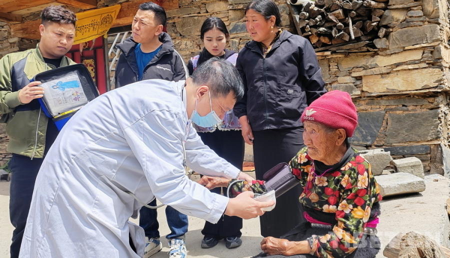 圖為 “同心·共鑄中國心”2025阿壩行大型健康公益綜合服務(wù)活動(dòng)義診醫(yī)療專家在四川省阿壩州馬爾康市草登鄉(xiāng)入戶巡診,為行動(dòng)不便的老人送醫(yī)送藥 攝影:喇應(yīng)強(qiáng)