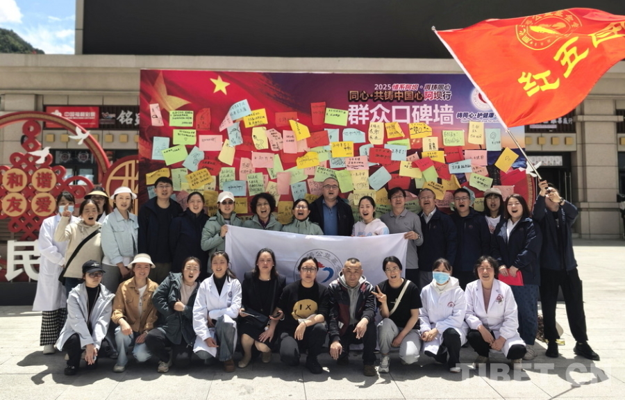 圖為“同心·共鑄中國心”2025阿壩行大型健康公益綜合服務(wù)活動(dòng)四川省阿壩州首府馬爾康市義診點(diǎn)的醫(yī)療專家們義診結(jié)束后在群眾口碑墻前留影 攝影:吉文革
