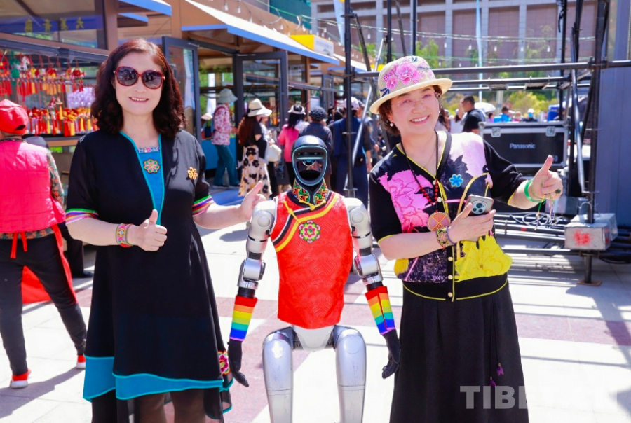 圖為民眾與身著傳統(tǒng)服飾的機器人熱情合影 青海省文化和旅游廳供圖