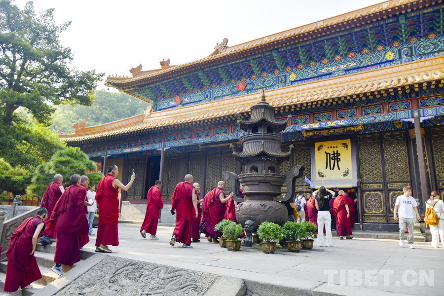 圖為西藏佛學(xué)院師生參觀法雨寺 攝影:趙振宇