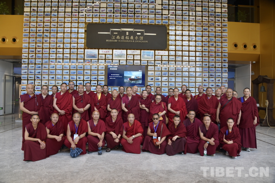 圖為西藏佛學(xué)院師生在上海江南造船廠(chǎng)合影,了解“中國(guó)第一船廠(chǎng)”到“航母搖籃”的發(fā)展歷史 攝影:趙振宇
