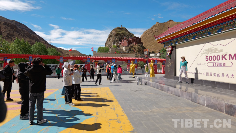 日喀則市拉孜縣強公村位于318國道5000公里處,這里是游客們前往珠峰景區(qū)的必經(jīng)之地,也被稱為“3185旅游服務(wù)區(qū)”。日前,記者在這里看到,有大批游客選擇在村口的318國道5000公里紀(jì)念碑前打卡。