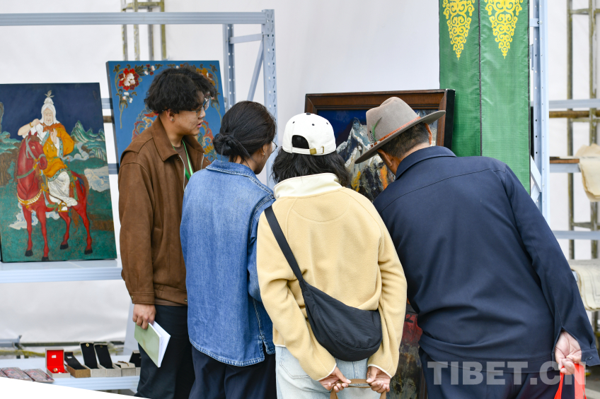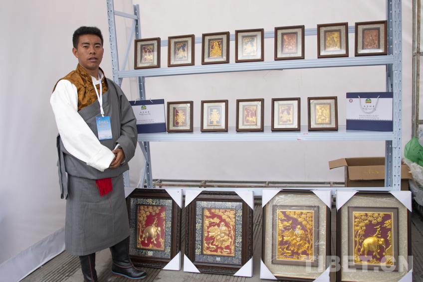 在集市的另一頭,是昌都市瑪吉阿媽唐卡畫院所展出的唐卡漆畫?!捌岙嬀哂欣L畫和工藝的雙重屬性。我們畫院主要是傳承嘎瑪嘎赤畫派的藝術(shù)作品,但近年來(lái)我們將傳統(tǒng)畫派藝術(shù)和福建漆畫進(jìn)行了有機(jī)結(jié)合,以漆畫的工藝結(jié)合唐卡的審美,創(chuàng)作出一系列作品。這些唐卡漆畫不僅在西藏很受歡迎,也有其他省份的人士向我們定制?!倍嗉嬖V記者,每一件唐卡漆畫都融合了西藏傳統(tǒng)故事、傳說(shuō)等文化內(nèi)涵,不僅是一件藝術(shù)品,更是向外界展示西藏優(yōu)秀傳統(tǒng)文化的窗口。