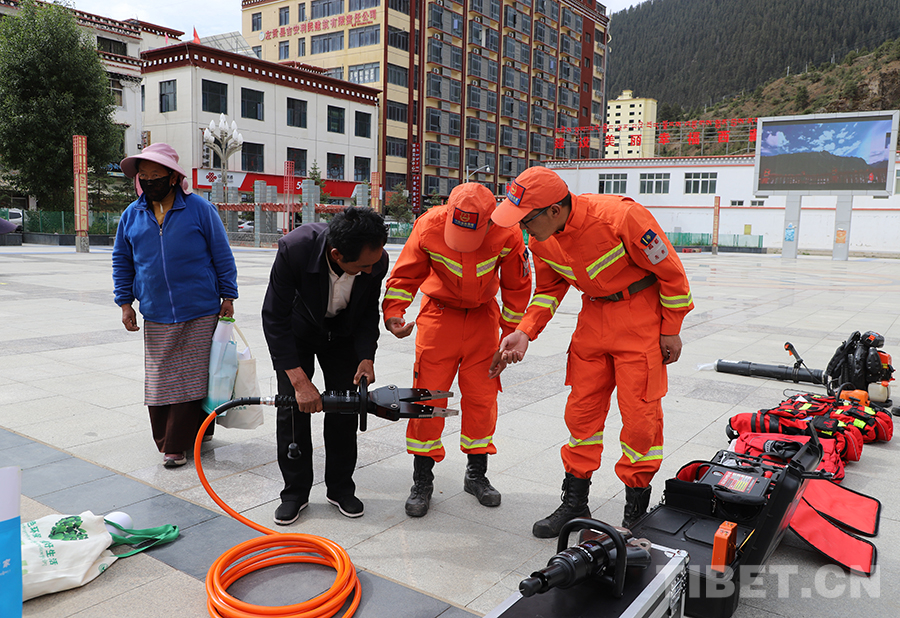 “這是我們最新配發(fā)的液壓擴(kuò)張器和液壓剪切器,主要用于打開(kāi)救援通道……”在裝備展示區(qū),消防員土登旺堆正在為群眾詳細(xì)講解液壓剪切器、液壓頂撐器、生命探測(cè)儀等各類(lèi)救援裝備的特點(diǎn)和使用方法,并邀請(qǐng)群眾進(jìn)行親身體驗(yàn)。