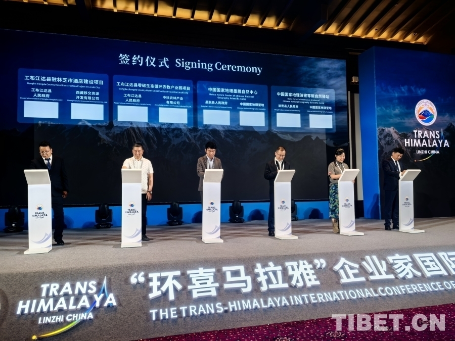 6月27日,“環(huán)喜馬拉雅”企業(yè)家國(guó)際會(huì)議在西藏林芝舉行。圖為現(xiàn)場(chǎng)簽約儀式 攝影:王淑
