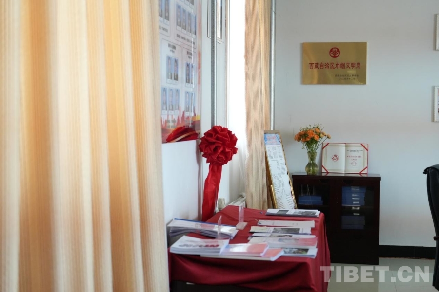 圖為阿里地區(qū)中級(jí)人民法院的溫馨調(diào)解室及“象雄梅朵”女法官維權(quán)工作站牌匾 攝影:邊子捷