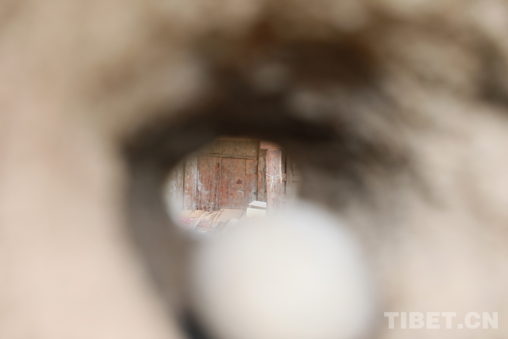 圖為位于四川省甘孜州鄉(xiāng)城縣青德鎮(zhèn)布機(jī)村的宗薩木府的古老夯土女兒墻上存留著正對大門的射擊孔,這樣的射擊孔還有多處,是當(dāng)年這座高大建筑的安保系統(tǒng) 攝影:劉莉