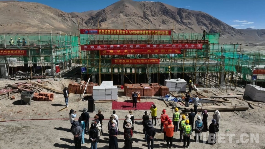 面對海拔4300多米的高寒缺氧、烈日風沙,施工團隊日夜奮戰(zhàn),克服重重困難,終于如期完成了全村民房的主體建設。乃村村民阿瓊說:“經施工團隊和各方努力,我家二層住宅今日順利封頂!施工全程進度、質量、安全均把控到位,成果令人欣喜。特別感謝施工負責人與工人們!”