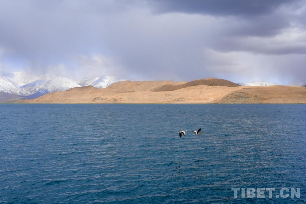 班公湖位于西藏阿里地區(qū)日土縣,湖面海拔4240米,是青藏高原西部最大的湖泊。湖水由東向西含鹽量遞增,因而在陽(yáng)光照射下,班公湖宛如一塊巨大的藍(lán)綠漸變琥珀綴于廣袤沙原。湖中央的鳥(niǎo)島上,鳥(niǎo)舞蹁躚,鷗鷺齊飛,不僅有棕頭鷗、斑頭雁,還有國(guó)家一級(jí)保護(hù)動(dòng)物黑頸鶴等珍稀鳥(niǎo)類(lèi)。每逢夏季,成千上萬(wàn)的鳥(niǎo)在此繁衍后代,遠(yuǎn)眺鳥(niǎo)島,能見(jiàn)一派沙鷗翔集、群鳥(niǎo)歸巢的壯觀景象。(中國(guó)西藏網(wǎng) 記者/邊子捷)
