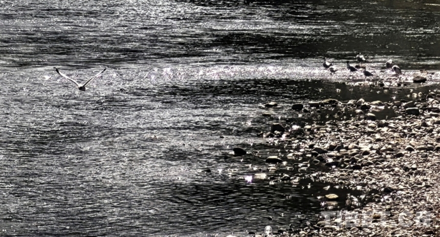 圖為拉薩兩島內(nèi)河綠色生態(tài)廊道一隅,水鳥棲息在河中的堤壩上 攝影:劉莉