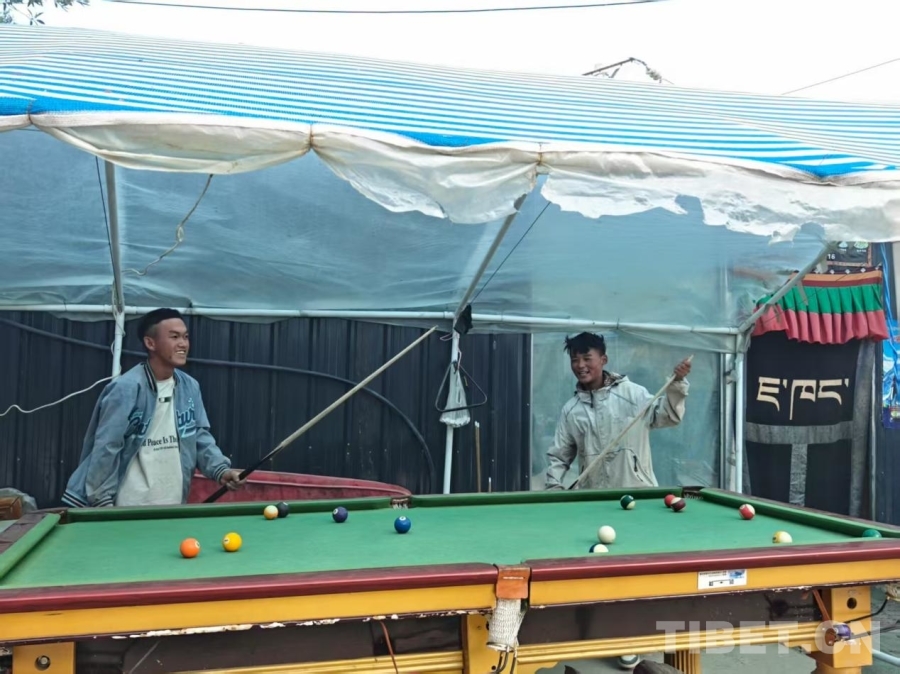 圖為森嘎村的年輕人在享受臺(tái)球的樂(lè)趣