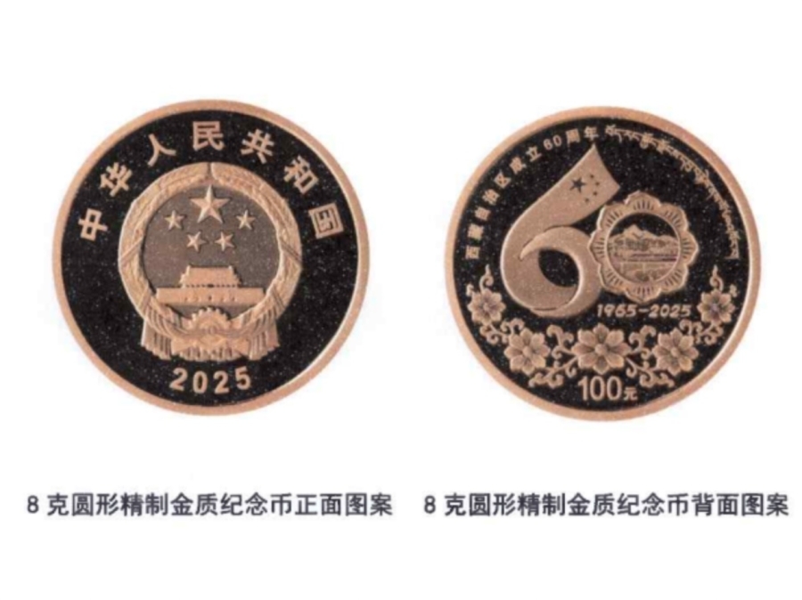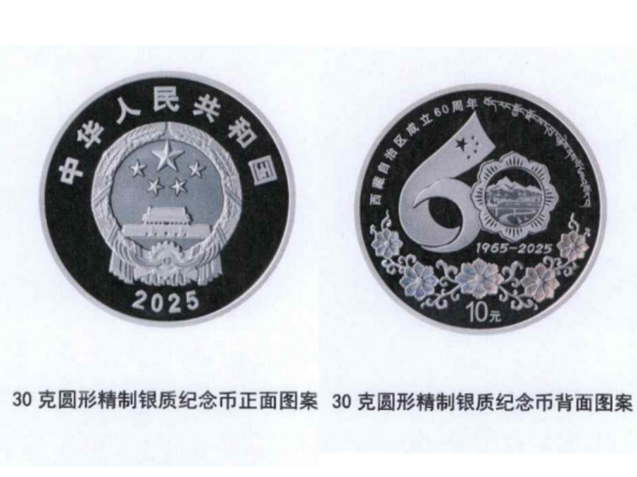 紀(jì)念幣正面圖案為中華人民共和國(guó)國(guó)徽,背面采用西藏自治區(qū)成立60周年慶?;顒?dòng)徽標(biāo)為主圖案,配以格?;y飾,并刊有“西藏自治區(qū)成立60周年”國(guó)家通用語(yǔ)言文字、藏語(yǔ)言文字字樣及面額。中國(guó)金幣集團(tuán)總經(jīng)理井軍介紹,該套紀(jì)念幣采用了浮雕、鏡面、激光噴砂等先進(jìn)造幣工藝,充分展現(xiàn)了西藏的發(fā)展成就和獨(dú)特文化。