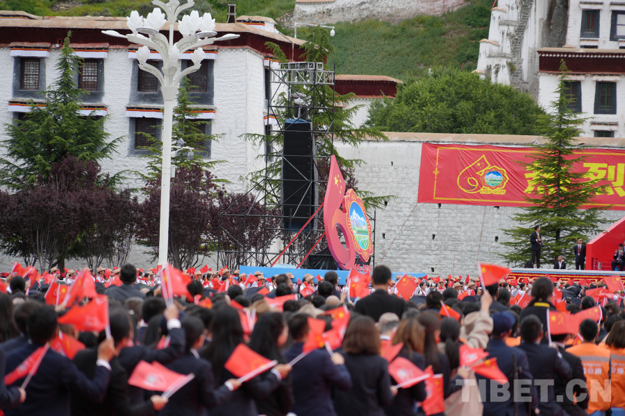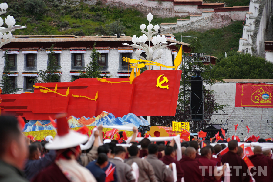 中國(guó)西藏網(wǎng)訊 西藏自治區(qū)成立60周年慶祝大會(huì)于8月21日上午10時(shí)在拉薩隆重舉行。伴隨著歡快的音樂(lè),熱烈歡騰的群眾游行在“旗幟引領(lǐng)”彩車的帶領(lǐng)下正式開始。(中國(guó)西藏網(wǎng) 記者/王淑 馮重霖 劉莉 趙釗 姚浩然 楊眉笑 德吉卓瑪 趙振宇 賈華加 邊子捷 次旦拉姆 旦曲)