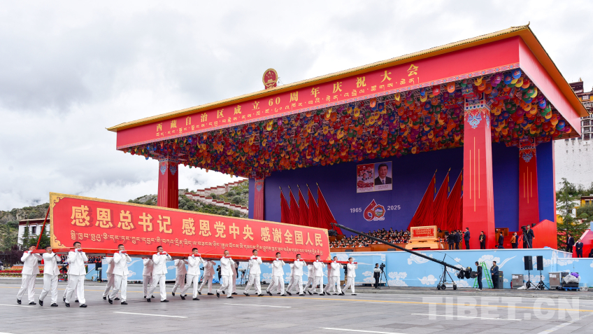 圖為西藏自治區(qū)成立60周年慶祝大會群眾游行 攝影:趙振宇